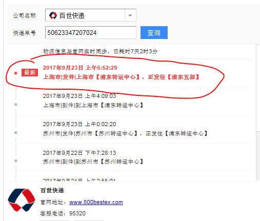 快遞到達(dá)浦東5部之后沒有派件,是否有更新進度? 快遞單號:50623347207024
